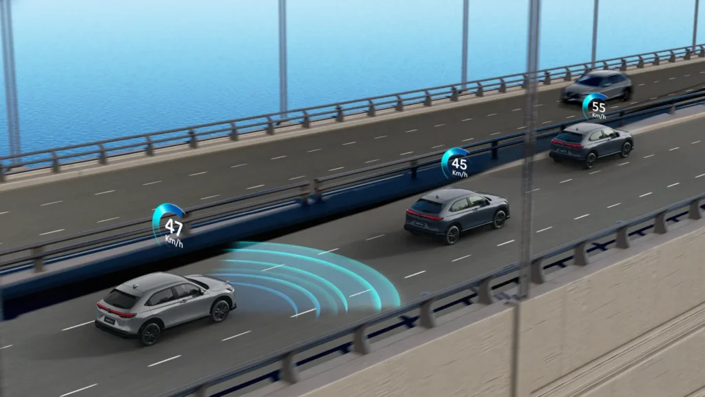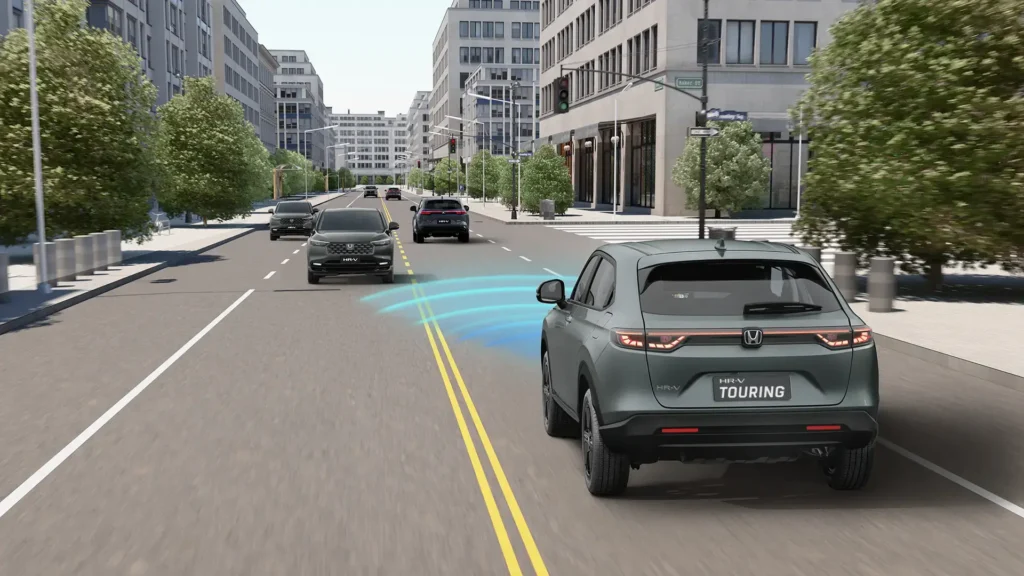 Cuando un vehículo detectado disminuye la velocidad y se detiene, también puede detener tu Honda. Después de detenerse, un toque en el acelerador vuelve a activar el ACC.