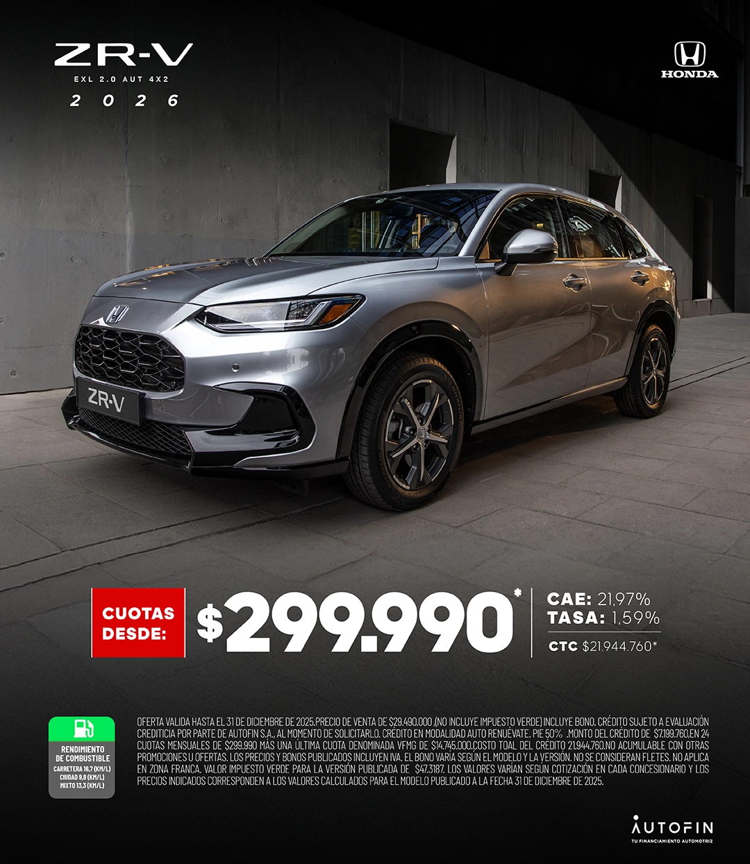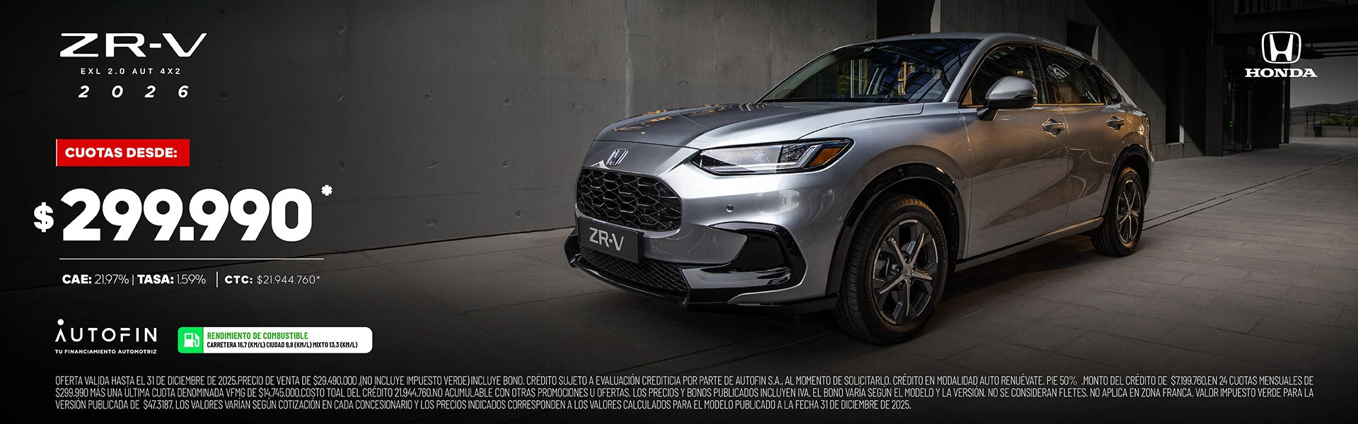 Oferta válida hasta 31 de diciembre. Bono exclusivo con financiamiento Autofin, responsabilidad de Honda. Crédito sujeto a evaluación crediticia al momento de solicitarlo. No acumulable con otras ofertas y promociones. No incluye impuesto verde. Los precios y bonos publicados incluyen IVA. El bono varía según el modelo y la versión. No se consideran fletes. No aplica en Zona Franca.